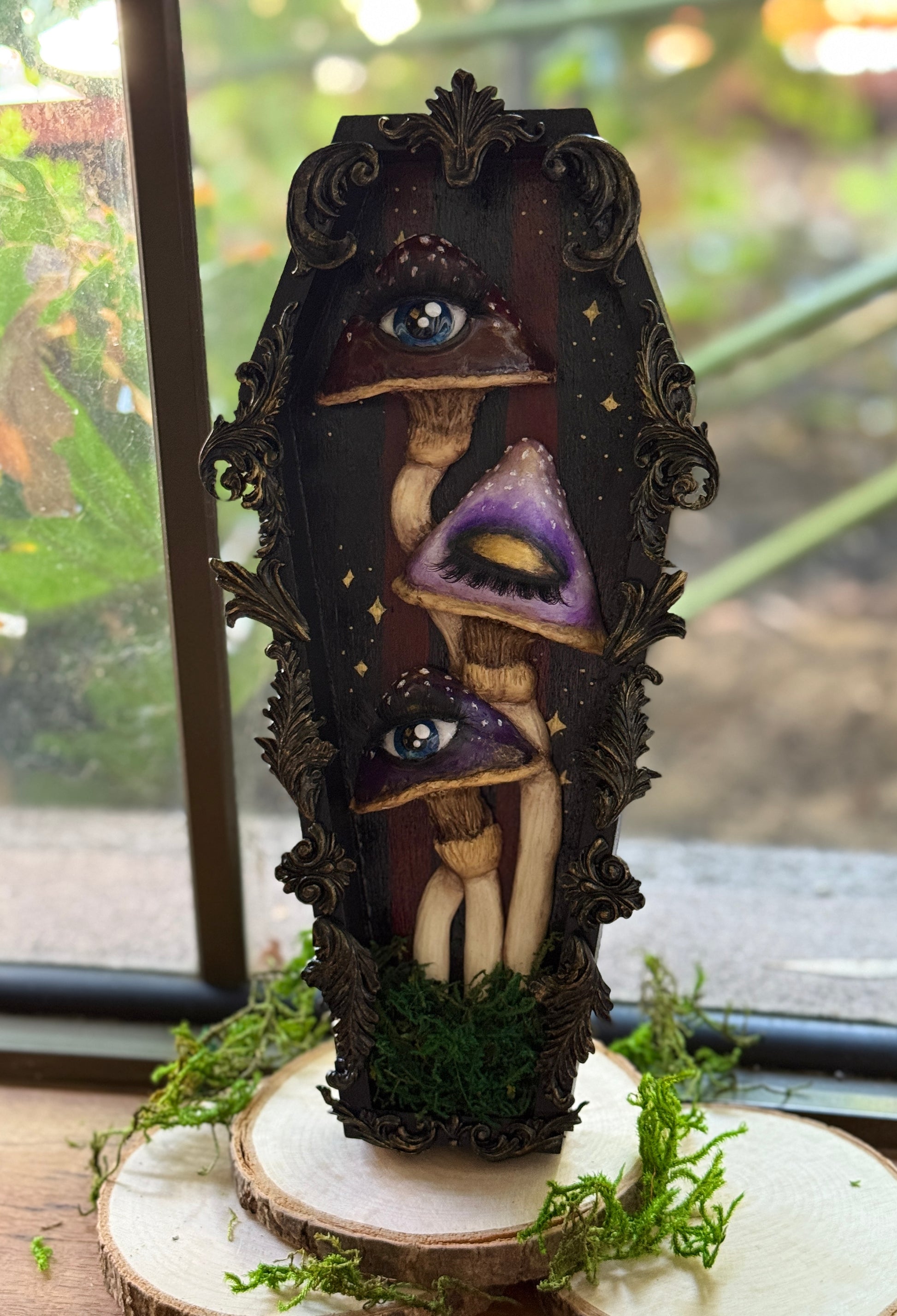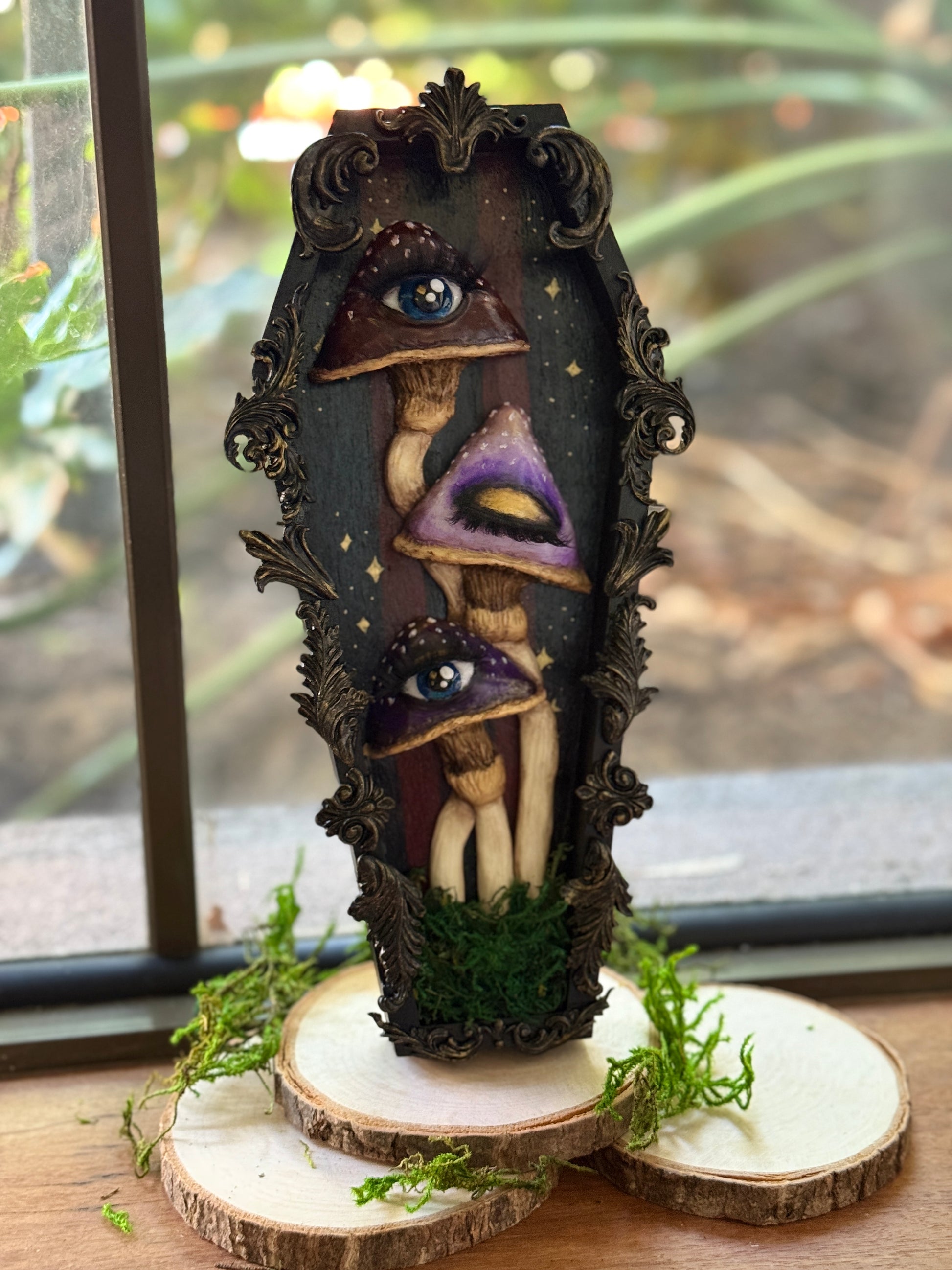 Handmade/Painted Eyeball Mushrooms wall hanging art piece.
