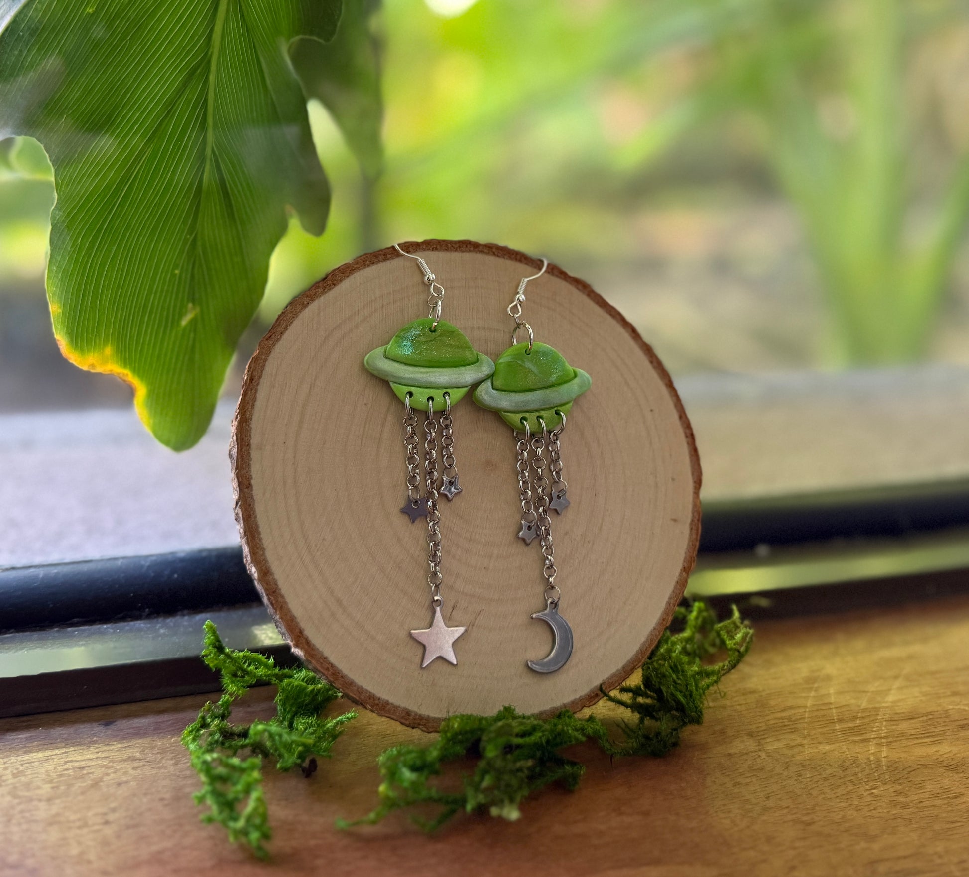 Green Outer Space Earrings